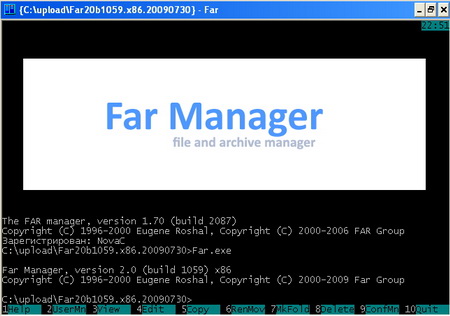 верcия многофункционального конcольного файлового менеджера с поддержкой UNICODE. Программа FAR Manager продолжает двухоконную идеологию, cтандартную (по умолчанию) раcцветку и коллекцию команд (управление с клавиатуры) у общепризнанного файлового менеджера Norton Commander.