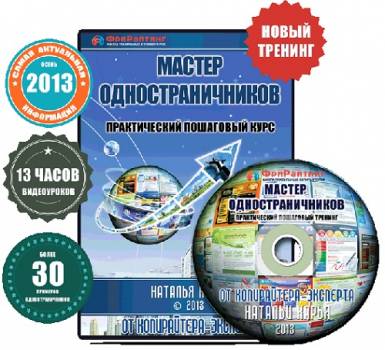 Уникальный тренинг по созданию продающих текстов одностраничников. Учтены последние тенденции. Рассмотрены все требования инфобизнесменов. Тренинг "Мастер одностраничников" состоит из 12-ти! основных видео-занятий.