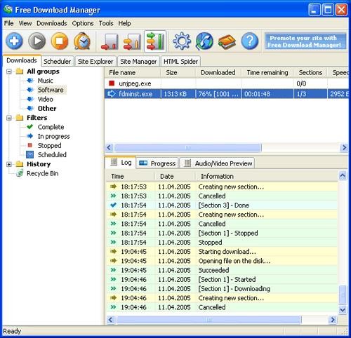 Программа: Free Download Manager 3.0.871ОС: Windows 98/ME/2000/XP/2003/Vista Разработчик: FreeDownloadManager.ORG Год: 2009Статус программы: БесплатноЯзык Интерфейса: МногоязычныйРазмер файла: 5.79 MbПрограмма, сочетающая в себе качалку файлов и оффлайн браузер. Free Download Manager также позволяет скачивать файлы с сервиса по обмену файлов RapidShare и видео с различных видео-сайтов (YouTube, MySpace, Google Video, Dailymotion, LiveDigital и Blennus). Эта утилита, в первую очередь, предназначается для пользователей, которым важен процесс скачивания как отдельных файлов, так и целых сайтов целиком. Интерфейс Free Download Manager весьма приятен и дружелюбен: ненавязчивые спокойные кнопки управления, в сочетании с легко настраиваемым внешним видом внутренних окон, позволят с комфортом работать и скачивать файлы. После инсталляции качалка интегрируется в браузер Internet Explorer, позволяя автоматически перехватывать загружаемые файлы или начинать загрузку, вызывая её из контекстного меню браузера. Также присутствует опция, аналогичная Корзине в FlashGet: для начала закачки файла нужно лишь перетащить ссылку в небольшое плавающее окошко.