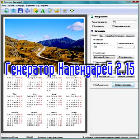 Генератор Календарей - программа для создания стильных календарей с фотографиями. Вы сможете создать календарь на любой год или месяц быстро и просто! Программа позволяет гибко настраивать дизайн календарей по вашему желанию, использовать десятки готовых вариантов дизайна высокого качества. Поддерживаются самые разные форматы календарей - от карманного до настенного. Результат можно экспортировать для обработки в других графических редакторах.Вы можете менять любые настройки календаря, включая шрифты, размеры надписей, поля и многое другое. В качестве фона можно использовать красивые градиенты, готовые изображения, поставляемые с программой, или просто загрузить свою фотографию. Кроме всего прочего, Генератор Календарей позволяет создавать календари с неограниченным числом фотографий, которые можно расставлять вручную или использовать функцию генерации коллажа.Год: 2009Операционка Windows: 2000, XP, 2003, VistaСтатус программы: Условно-бесплатная (на 30 запусков) Интерфейс: Русский Размер: 11.74 MbСкачать Генератор Календарей v.2.15/Rusletitbit.netvip-file.comsms4file.comturbobit.net