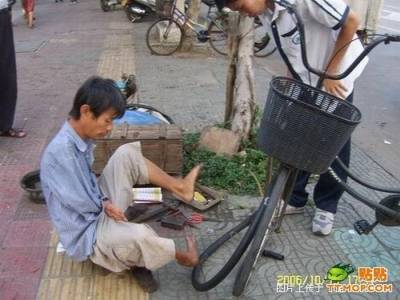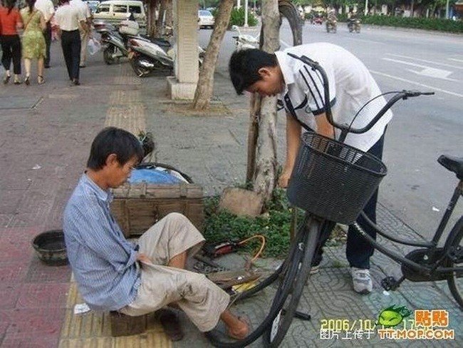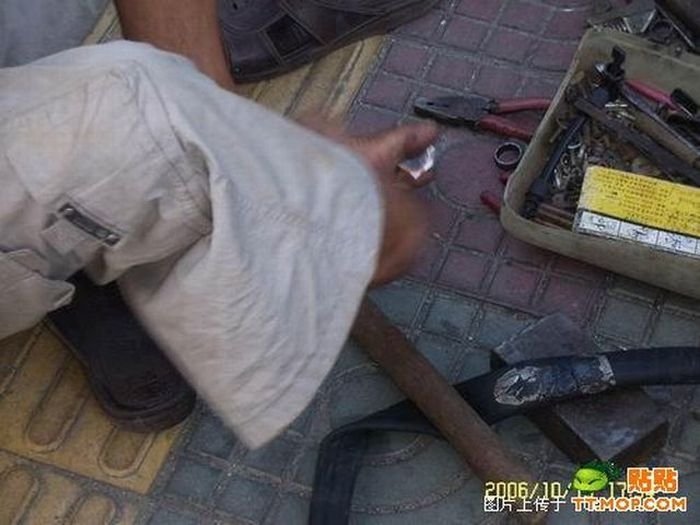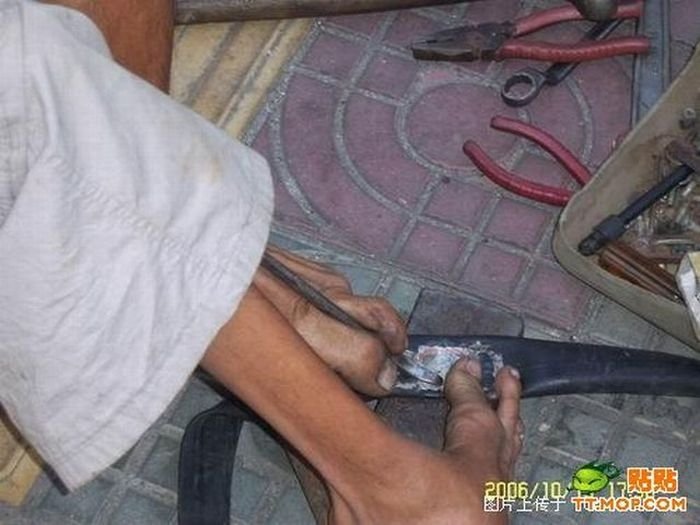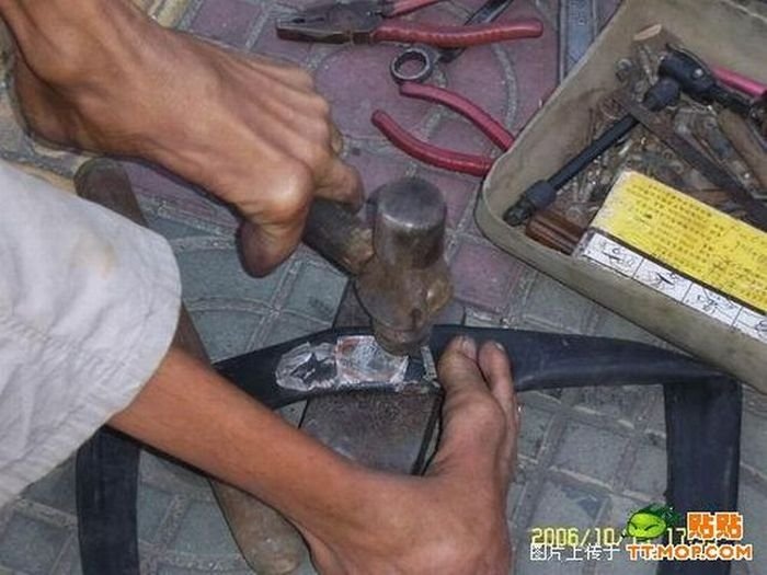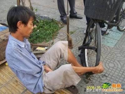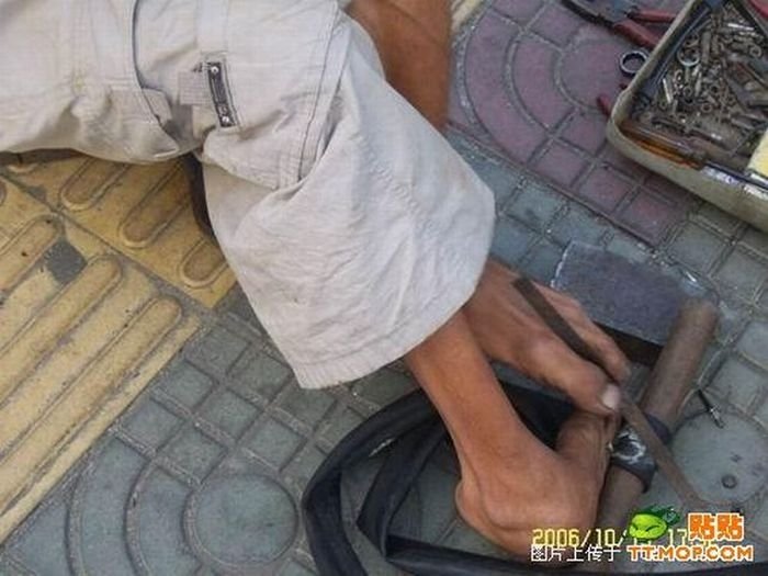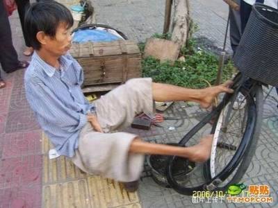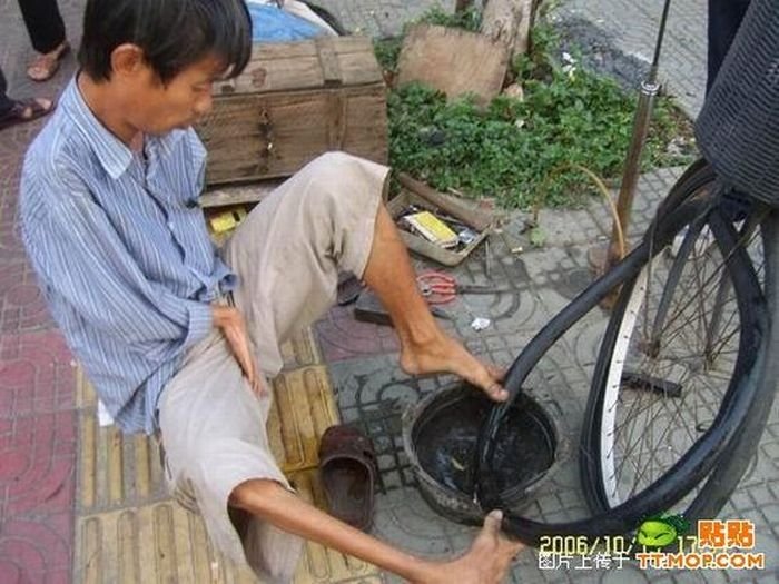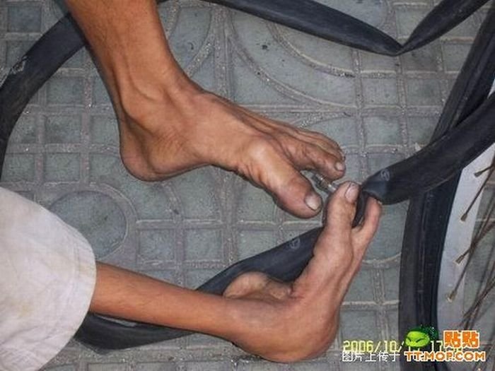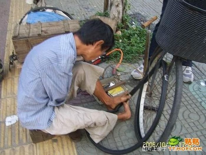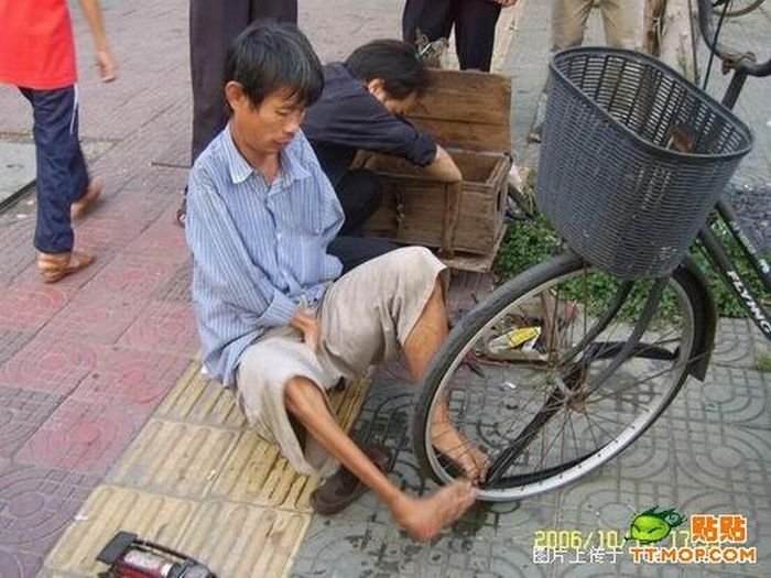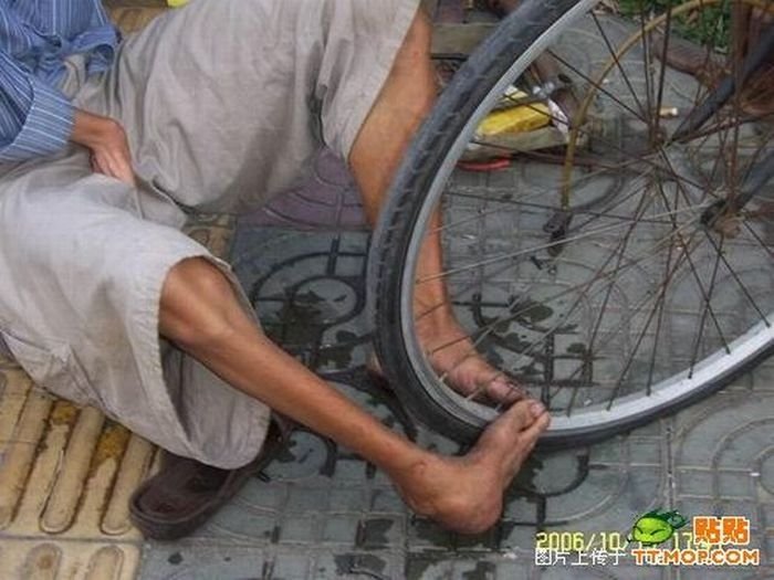 Этот безрукий парень из Китая может починить ваш велосипед! Смотрите, как он это делает!
