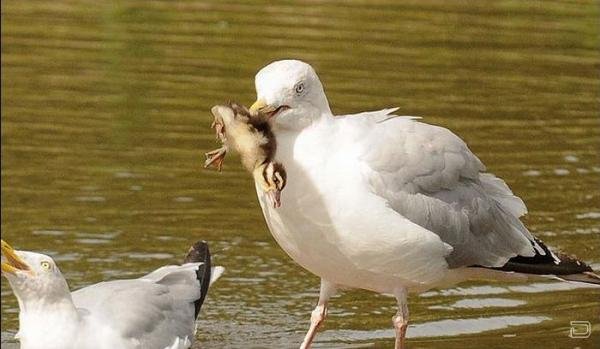 Стал обедом для чайки...