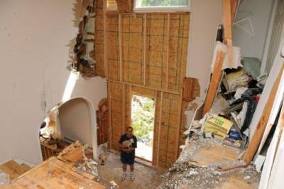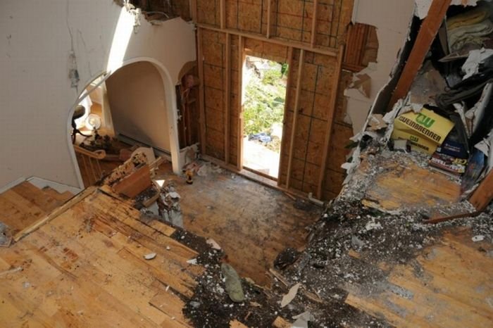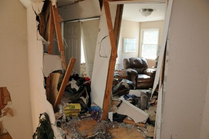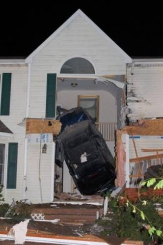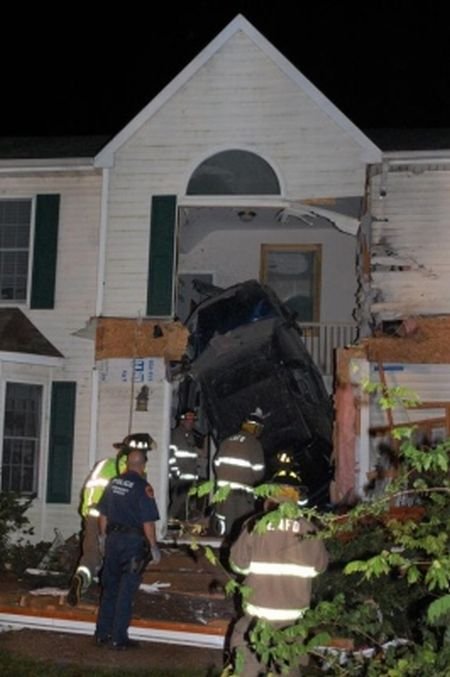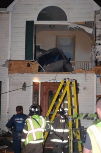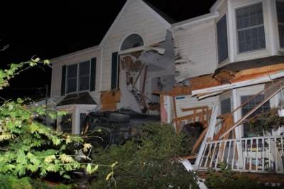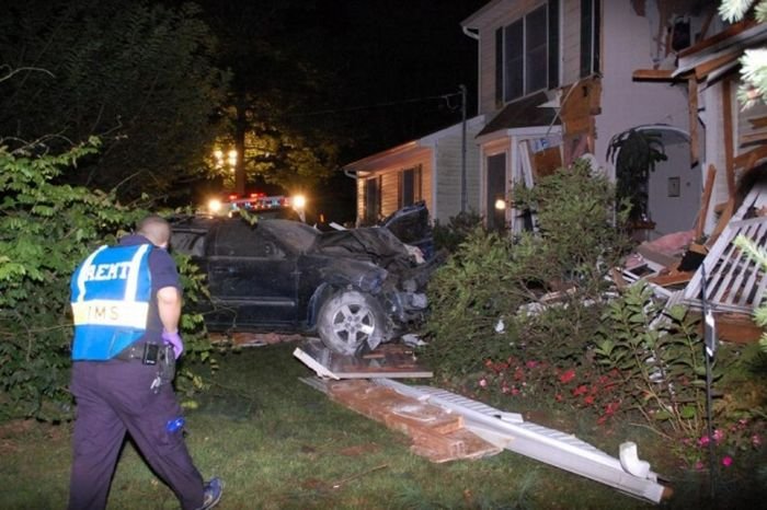 В Нью-йорке пьяный 20-ти летний водитель, в компании не менее трезвого друга, решил погонять и улетел в дом. В результате, здание получило серьезный урон. К счастью, хозяин дома спал в другой части дома и не пострадал, а ребята отделались легкими ушибами. Придурки...
