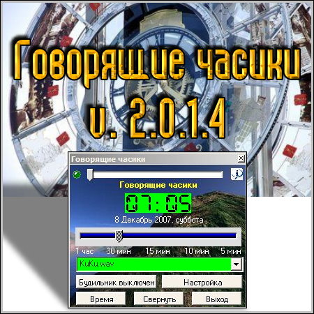 Год выпуска: 2009Платформа: Windows allЯзык интерфейса: русскийТаблэтка: Не требуетсяРазмер: 2.72 MbГоворящие часики с помощью красивого персонажа на русском языке сообщают текущее время. Много дополнительных возможностей, которые легко можно настроить так как вам захочется.