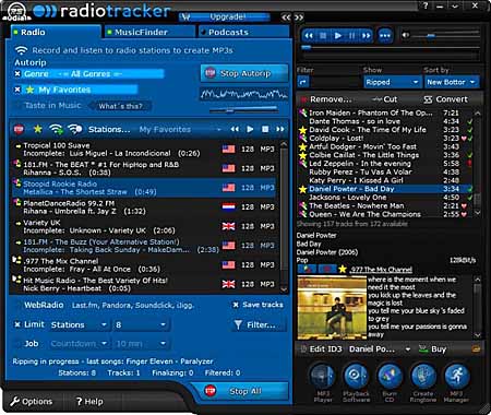 Radiotracker - удобный комбайн для прослушивания и записи интернет-радиостанций, поиска музыки, а так же работы с подкастами.