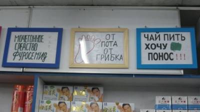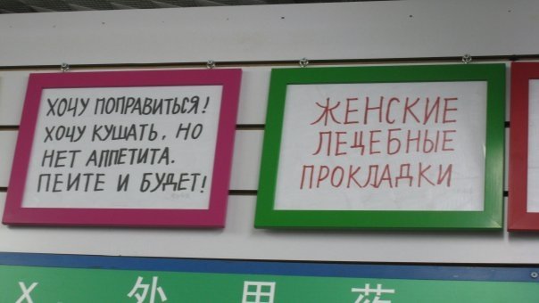 Вот такую рекламу, рассчитанную на посетителей из России, можно найти в одной китайской аптеке!