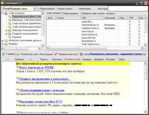 FreePromote - Бесплатная программа для раскрутки сайтов и софта, путем качественной полуавтоматической регистрации в поисковиках, каталогах, досках объявлений, софт-каталогах.Основные возможности программы:1. Качественная полуавтоматическая регистрация в поисковиках, каталогах, досках объявлений.2. Размещение объявлений на форумах.3. Email рассылка по контактам.4. Регистрация софта в софт каталогах.