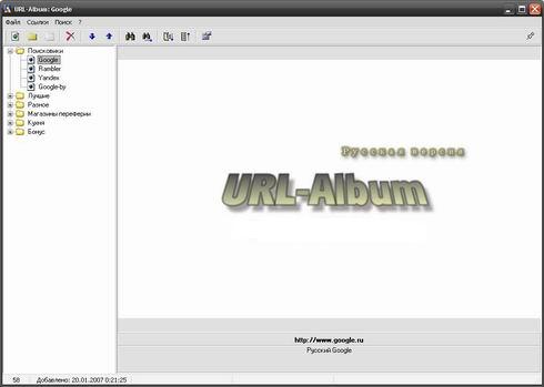 Утилита URL-Album позволяет организовать коллекцию интернет-ссылок в наглядном виде, сопровождая каждый адрес скриншотом сайта и описанием, разбив при этом по категориям.