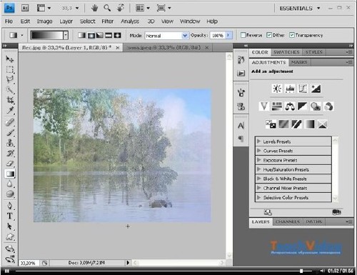 Содержание: 1.Назначение программы Adobe Photoshop CS4 2.Интерфейс программы Adobe Photoshop CS4 3.Переключение интерфейса 4.Работа с панелями и палитрами 5.Новая панель Adjustments 6.Создание нового изображения 7.Сохранение изображения 8.Импорт изображений и видео 9.Навигация по рабочему пространству 10.Работа со слоями 11.Уменьшение размера фотографии 12.Рамка фотографии 13.Яркость, контрастность 14.Изменение цвета, смешивание цветов 15.Как улучшить резкость фотографии 16.Как улучшить качество старинных фотографий 17.Как совместить несколько фотографий 18.Замена цвета 19.Как из черно-белой фотографии сделать цветную 20.Фотомонтаж 21.Работа с панелями и палитрами 22.Работа со слоями 23.Растеризация и слияние слоев 24.Работа с направляющими 25.Взрывающийся текст 26.Слоистая надпись 27.Хромированная надпись 28.Изображение в надписи 29.Текст с несколькими контурами 30.Эффект трехмерной надписи 31.Цветовые модели 32.Работа с документами 33.Инструменты рисования 34.Работа с кистями 35.Инструменты Path, Type, Shape, Line, Notes 36.Инструменты просмотра изображения другие инструменты 37.Использование градиента в качестве слоя заливки 38.Работа с инструментом Gradient 39.Создание и редактирование образца градиента 40.Клонирование 41.Интерфейс 42.Панель инструментов 43.Настройки Camera Raw 44.Работа с гистограммой 45.Настройка баланса белого 46.Настройка экспозиции 47.Настройки цветности 48.Тоновые кривые 49.Инструменты цветокоррекции 50.Преобразование в монохром