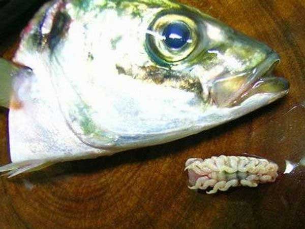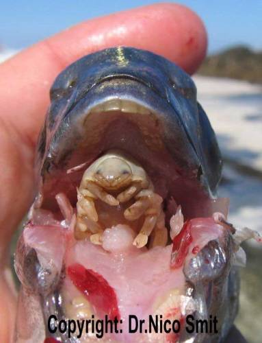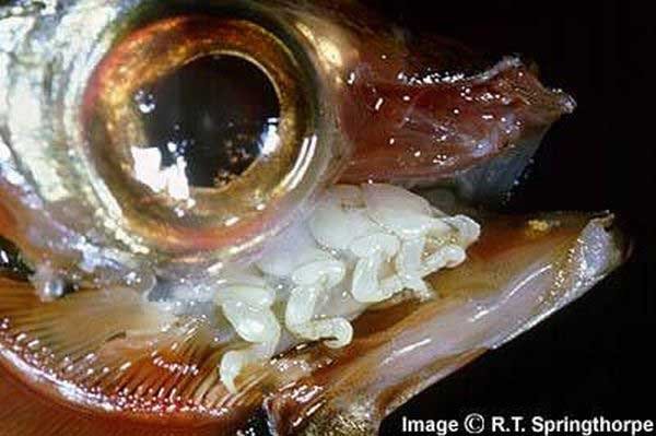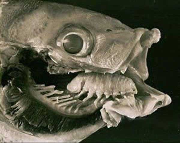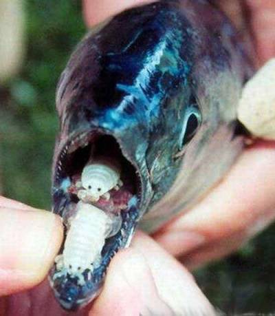 Cymothoa exigua или пищевая вошь - паразитное ракообразное, размером 3 - 4 см. В рот рыбы оно попадает через жабры и приклеивается к её языку. Когда она приклеилась, она начинает сосать кровь через свои щупальца. Паразит все время растет и со времени он высасывает столько крови, что его хозяин попросту умирает... По началу рыба использует паразита как нормальный язык и кажется что он не приносит ей никаких проблем. Это - единственный известный случай паразита, функционально заменяющего орган хозяина.