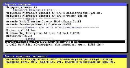 О программе: Мультизагрузочный диск используется для "чистой" установки с загрузочного компакт диска (в Bios в меню Boot выставить, First boot device-CDROM) Установка выполняется в ручном или автоматическом режиме, после выбора на какой диск устанавливать. Ввод серийного номера не нужен, обновления с Мicrosоft без проблем. Интегрированное программное обеспечение (без возможности выбора):- DirectX 9.0c Redistributable (август 2009) - UxTheme - Патченый файл для применения неподписанных тем - Tcpip.100 -Увеличение лимита одновременных незавершенных (half-open) соединений TCP/IP c 10 до максимум - Аддон Required Dll's - Дополнительные файлы .dll необходимые для запуска некоторых программ. - Windows Media Player 11 v.11.0.5721.5260 - Internet Explorer v8.0.6001.18702 - Sptd v1.60 виртуальный драйвер - J2SE Runtime Environment v6.0 update 16 - Adobe Flash ActiveX Control v10.0.22.87 - Adobe Flash Player Plugin 10.0.22.87 - .NET Framework 1.1 SP1 + KB886903 + Language pack (Rus) - .NET Framework 2 SP1 + Language pack (Rus) - Paint.Net v3.36 -Графический редактор, позиционирующийся как замена стандартному редактору PaintИнтегрированное программное обеспечение (с возможностью выбора WPI): Драйверы (с возможностью выбора, что ставить):-Драйвера для SCSI, Sata, Raid контроллеров от YikxX -Драйвера для Lan (сетевых карт) -Драйвера для Видеокарт -Драйвера для Чипсетов (материнские платы) -Драйвера для Звуковых карт -Драйвера для Wi-Fi устройств Все драйвера используются с сайта Driverpacks Дополнительные аплеты в панели управления Windows:-TweakUI - утилита TweakUI из пакета MS Power Toys. -Настройка ClearType - утилита для визуальной настройки отображения шрифтов -Учётные записи пользователей Win2k - аплет, доступ к которому в Win XP, возможен по команде control userpasswords2 Новое оформление:- Звуковое оформление Vista - Курсоры - Обои для рабочего стола - Экраны приветствия и выхода из системы - Меню установки - Аддон Vista Path автора Prokazzza за, что ему отдельное спасибо Темы:- Royale (по умолчанию) - Royale2 - Opus OS - Vista Ultimate - SDF Vista 10.5 - SDF Parther 3.0 - Zune Удалены:- Docs, Support, Valueadd, WIN9XMIG, WIN9XUPG - MSN - Тур знакомство с Windows XP - Net Meeting Настройки:-Различные твики реестра -Часовой пояс +3 Москва Отключены службы: -Aвтоматического обновления -Брандмауер Windows -Центр обеспечения безопасности -Восстановления системы P.S Вы их можете включить в службах если Вам необходимо Список изменений по сравнению с ZverDVD v9.7:Критические обновления Microsoft по сентябрь 2009 года Обновлены: - DirectX 9.27.1734 (Август 2009) - Windows Key Enterprise Edition - Java SE Runtime Environment 6.16 - IE8 - Windows Media Player 11 - SPTD v1.60 - Adobe Flash Player 10.0.32.18 - Inno Setup Unpacker 0.22 - Драйвера MassStorage - Драйвера Video - Драйвера WiFi - Драйвера Sound - Драйвера Chipset - Драйвера Modem Исправления: - Возможность установки c внешних CD-DVD приводов Добавлены: - Alkid LiveCD от разработчика, специально для проекта Zver -Новый intro Список изменений в WPI 3.3:- WPI версии 7.7.0 - Обновлены программы до последних версий - Увеличен таймер автозапуска установки программ до 150 секундСколько по времени устанавливается сборка?Сборка ставится с выбором параметров по умолчанию около 50 минут на ноутбуки: Acer Aspire 6935G-944G32Bi Toshiba SATELLITE A300-20Q Dell Latitude D520Информация о программеНазвание:Zver 9. 9. 9 + Alkid SE Обновления от 10 сентября 2009г.Год выпуска:2009Платформа:All WindowsЛекарство:присутствуетРазмер: MbСкачатьСкачать одним файломБесплатноDownload | ЗеркалоНа максимальной скоростиDownload | ЗеркалоDownload | ЗеркалоПо частямБесплатноDownload | ЗеркалоDownload | ЗеркалоНа максимальной скоростиDownload | Зеркало